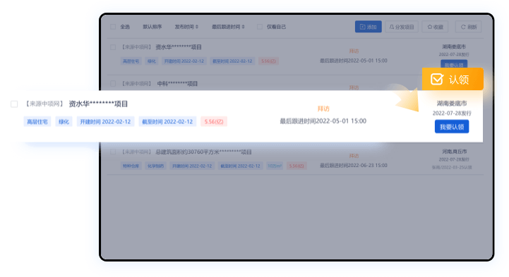 數(shù)據(jù)庫內(nèi)項目,支持直接認領(lǐng)為自己跟進項目